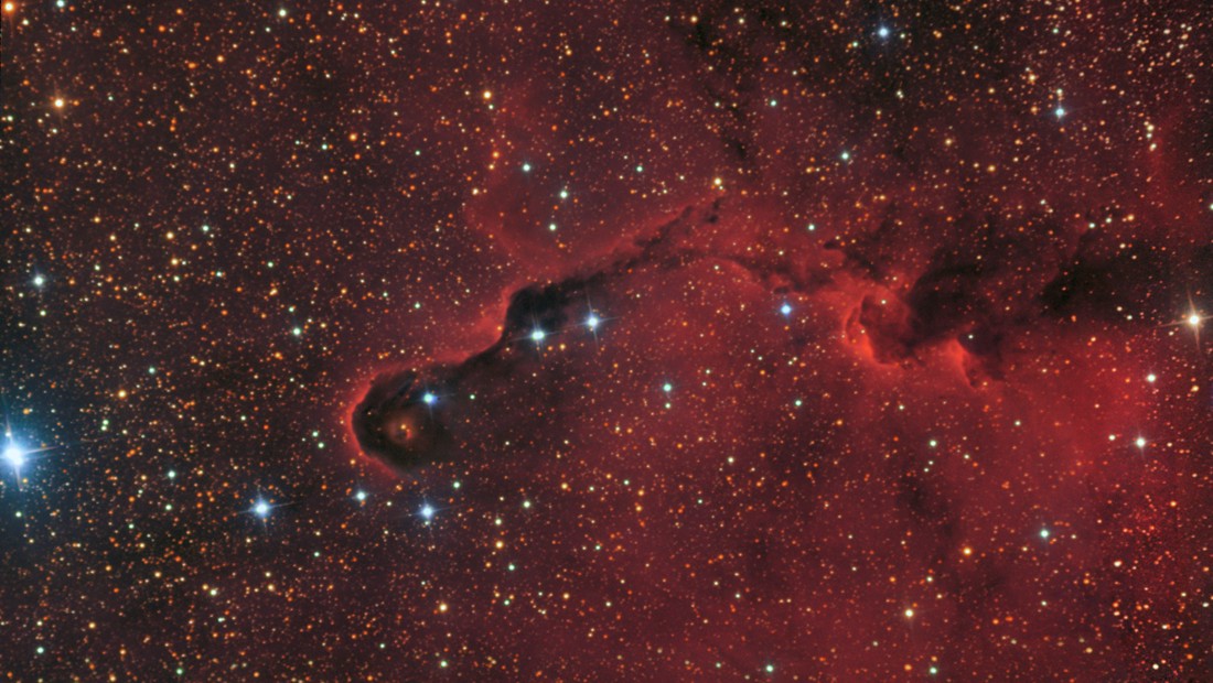 Der Elefantenrüsselnebel IC 1396A ist eine hell berandete Globule = eine Ansammlung von interstellarem Gas +