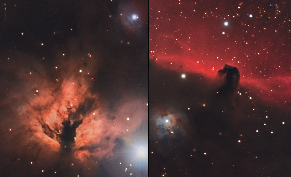 Flammennebel NGC 2024 (links) - sowie Pferdekopfnebel B 33, Reflektionsnebel NGC 2013