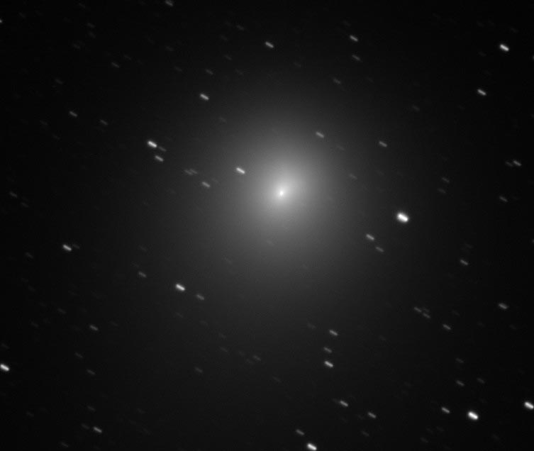 Teleskopische Aufnahme von Kern und Koma des hellen Kometen des Frühjahrs 2002 in der Volkssternwarte Radebeul.