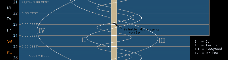 Dne 22. zárí mužeme pozorovat prechod mesíce Io pres Jupiteruv kotouc. Bohužel se Jupiter na zacátku této