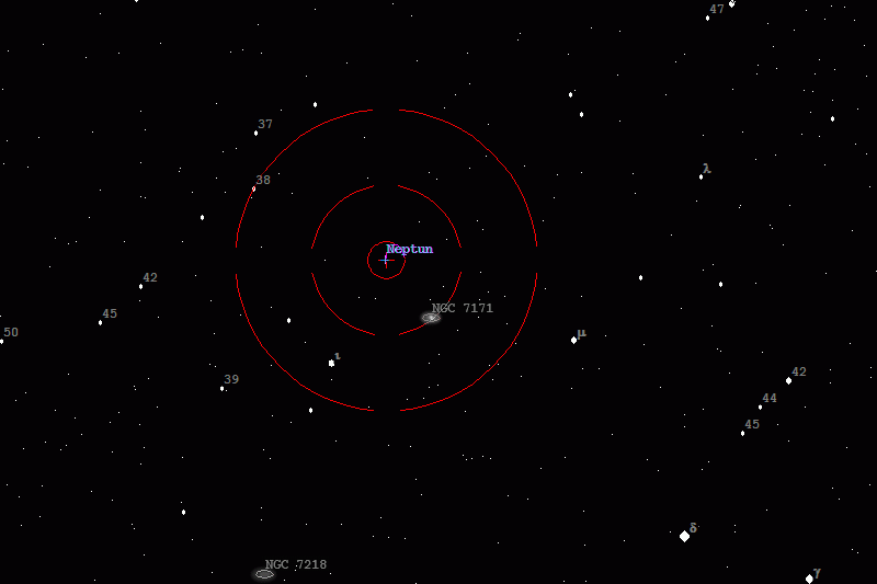 V 00:00 hod SELC (1 hodinu pred skutecnou pulnocí) dosáhne Neptun meridiánu a nachází se 26° nad jižním