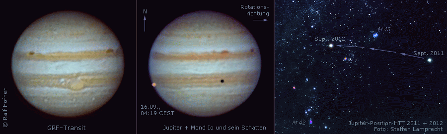 Hier ist im mittleren Bild der Anblick des Jupiters am frühen Sonntag-Morgen: 16. Sept. 2012, um 04:18 Uhr beim