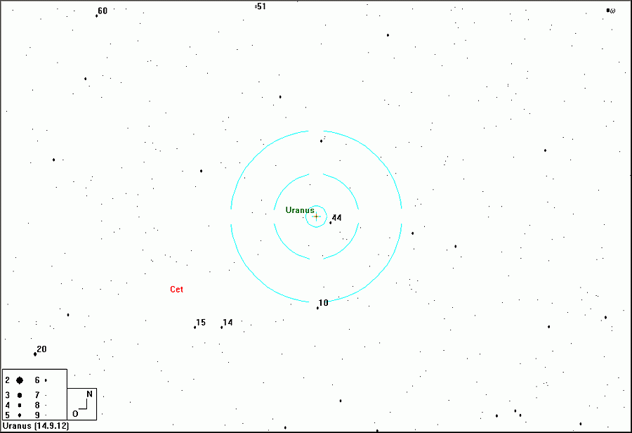 Die Position von Uranus am 14. September 2012, um 0:00 Uhr UT