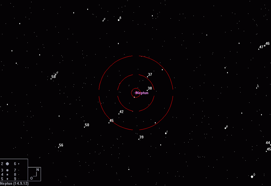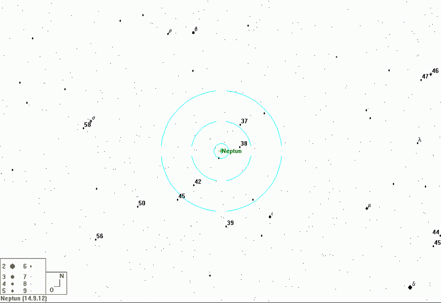 Neptun im Sternbild Wassermann - am 14. September 2012, 0:00 Uhr UT