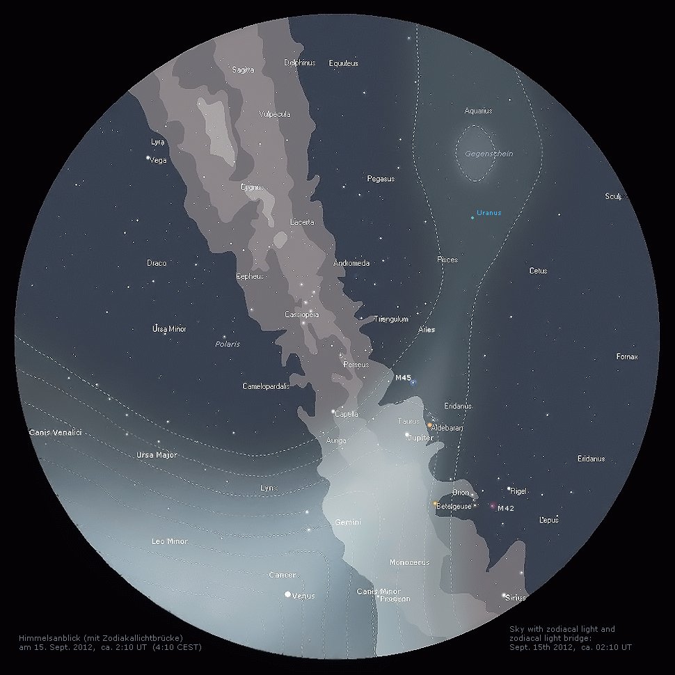 hier]. Das Ekliptiklicht erstreckt sich vom Stern- bild Löwe,