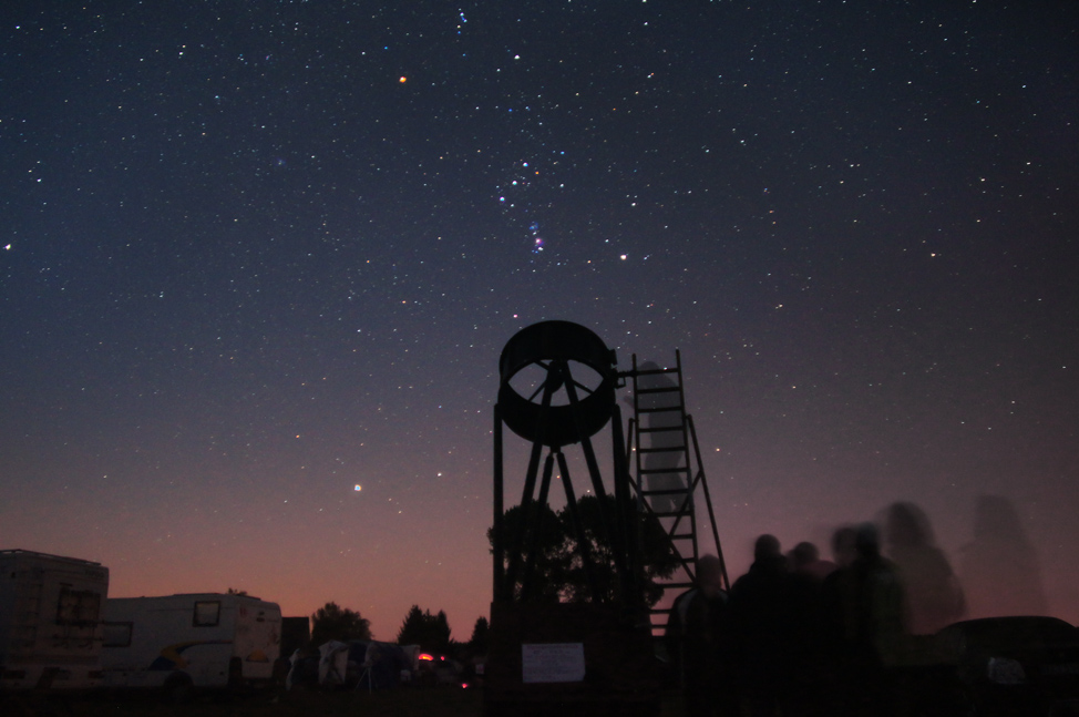 Der 'Hundsstern' Sirius ist links neben dem großen Dobson-Teleskop zu sehen, sein Aufgang markiert Mitte September bei