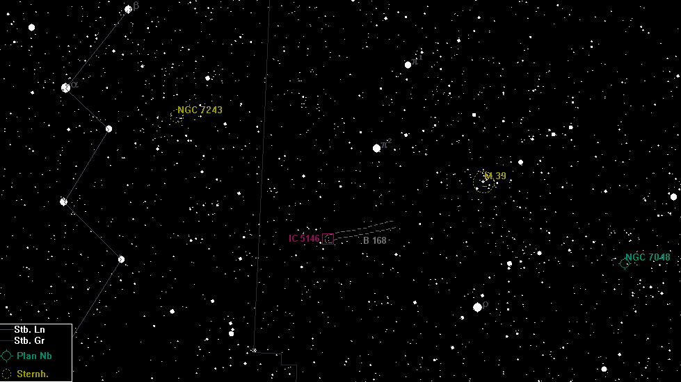 besonderes Schmankerl für Optiken ab etwa 8-10" Öffnung - der Cocoon Nebel IC 5146. Am besten wird dieser mit einem