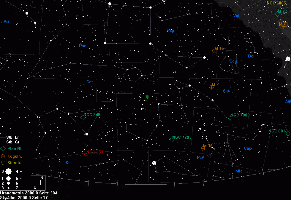 15. September 2007: RA: 23h 11min Dekl.: -6,1° Durchmesser: 3,7" |